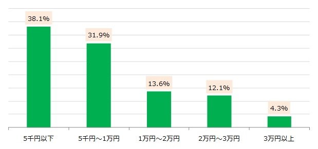 親は「5千円以下が妥当」と回答する方が38.1%と最も高く、一方で子供は「5千円~1万円を希望」と回答する方が30.1%と最も多い。