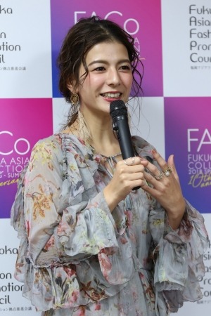 12月18日(月)、福岡市内で行われた記者発表会には、スペシャルゲストとして1回目からゲストモデルとして出演しているスザンヌさんが登場。10年間の思いを語りました。
