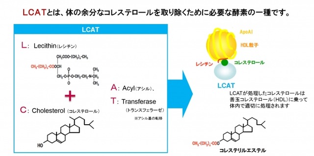LCAT欠損症とは、体内で善玉コレステロールを分泌するための酵素「LCAT」が生まれつき備わっていないために、過剰なコレステロールが体に溜まって、瞳が白く濁り、腎臓の働きが悪くなって透析に至ることがある遺伝病です。根本的な治療法がなく、これまで血しょう輸血、食事療法や薬物療法が試されてきましたが、十分な効果は得られていません。