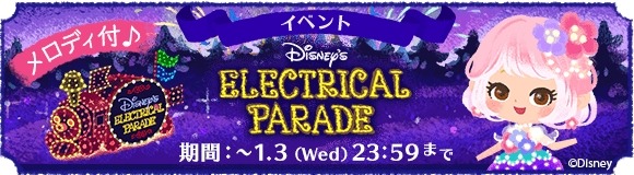 ココネ株式会社が運営する、iOS、 Android向けアプリ『ディズニー マイリトルドール』にて、期間限定イベント「エレクトリカルパレード ~光の魔法~」を開催中!