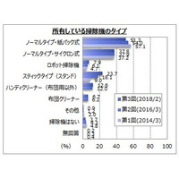 ロボット掃除機の所有者は8%。そのうち3割強は「従来型の掃除機をメイン、ロボット掃除機をサブ」で利用…