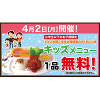 4月2日は、大人1名に付きお子様1名分の「お子様メニュー」無料!!4月9日は、ご来店の皆様全員に「ステッ…