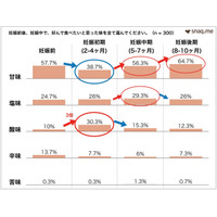 【妊婦さんのおやつ事情調査】 「酸味」はやはり妊娠前後で最も変化の大きい味覚。 妊娠後に酸味のあるものを食べたい妊婦さんが3倍にも!