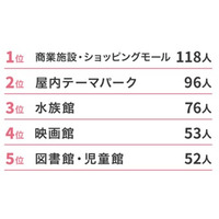 雨の日に子どもと楽しみたいのは、1位「商業施設」、2位「屋内テーマパーク」、3位「水族館」 スターツ…
