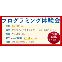 ビデオチャットを活用したプログラミング教室「ぷららぼ」が、9月23日に東京・立川市で小学生を対象にした「プログラミング体験会」を実施!