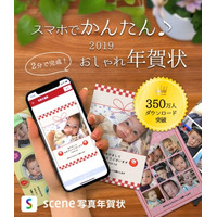 スマホで簡単におしゃれ年賀状!累計350万ダウンロードの人気アプリScene<シーン>が「Scene写真年賀状2019」注文受付を開始!新機能「AI年賀状」があなたにオススメの写真年賀状を自動作成