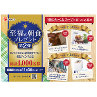 フジッコ「朝のたべるスープ」“至福の朝食プレゼント第2弾“キャンペーン開始。コンラッドホテルの朝食ブッフェ、ホームベーカリーなど…総計1,000名様に当たる!