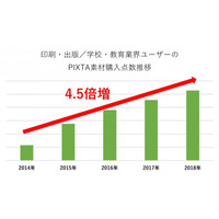 追加使用料不要のPIXTA「ロイヤリティフリー」素材、学習教材用素材として需要増加。5ヶ年で購入点数は4.5倍に