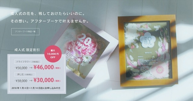 1992年、結婚式などで使った想い出の花束(ブーケ)を、押し花にして額装する「アフターブーケ」のサービスを開始。