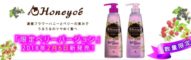 この「ベリーバージョン」のシャンプーとトリートメントに通常品のヘアマスクを合わせたトリプルセットとして数量限定で発売いたします。ハニーチェのこの時期だけの特別なパッケージと香りをお楽しみください。