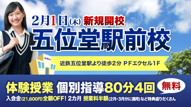 開校を記念し、特典をご用意しました。見学・学習相談は、いつでも承っておりますので、ぜひこの機会に「個別指導Axis五位堂駅前校」をご利用ください。