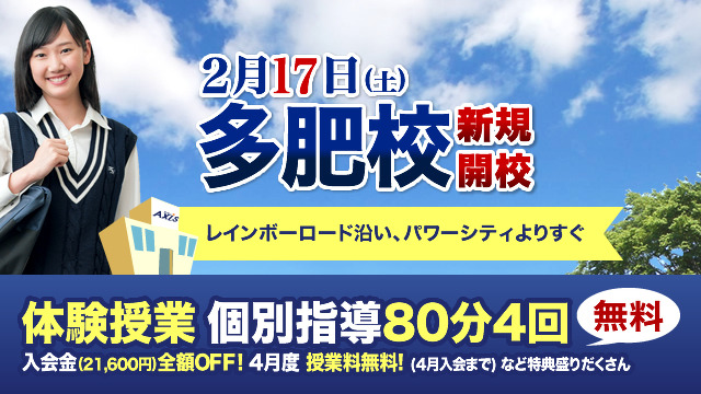 開校を記念し、特典をご用意しました。見学・学習相談は、いつでも承っておりますので、ぜひこの機会に「個別指導Axis多肥校」をご利用ください。