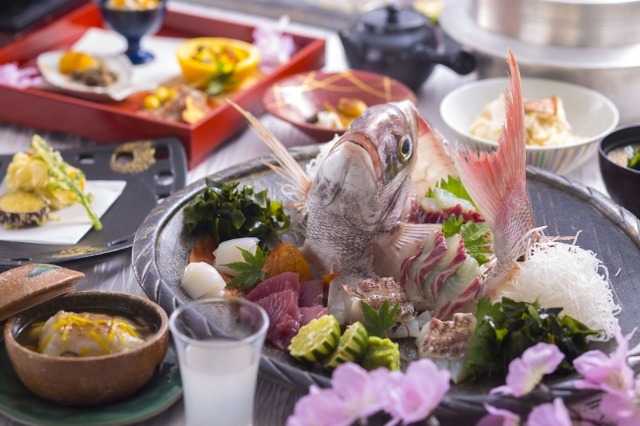 【夕 食】海鮮「鳴門」一本釣り桜鯛会席 *産卵期を迎えた鯛は脂も乗りが良く、身は鮮やかな桜色に。