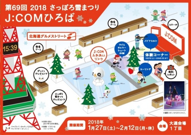1月27日(土)には、雪まつり会場唯一のスケートリンク「J:COMふれあいリンク」の完成報告会を兼ねた「J:COMひろばオープニング・セレモニー」を開催いたしますので、この冬一番の素敵な思い出づくりに、ぜひ「J:COMひろば」にお越しください。