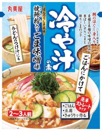 丸美屋食品工業株式会社(本社:東京都杉並区、社長:阿部豊太郎)では、「期間限定 冷や汁の素<焼鯵粉入りごま味噌味>」「期間限定 冷や汁の素<香ばし海老だし味噌味>」「期間限定 冷や汁の素<鶏すだち味>」を、2018年2月22日(木)から9月30日(日)までの期間限定で販売いたします。メイン具材入りのストレートタイプなので、冷蔵庫で冷やして常備食材を加え、ごはんにかけるだけで簡単に冷や汁が作れます。郷土料理をアレンジした期間限定ごはんメニューで市場を盛り上げます。