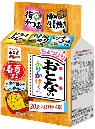 ・定番の「おとなのふりかけミニ その1・その2」に加えて、お弁当利用の多い中高生に人気のメニューを揃え、春夏限定で展開します。