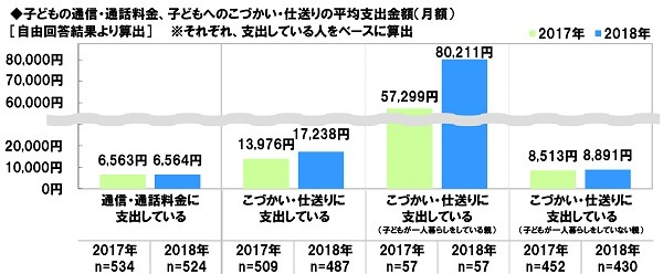 一人暮らしの子どもへの仕送り平均額は80,211円、昨年調査から22,912円/月増加
