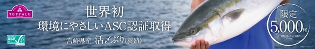 「トップバリュ asc認証ぶり」は、宮崎県産で育てられたぶりです。国内のasc認証取得は、宮城県南三陸町の牡蠣に続き2例目です。