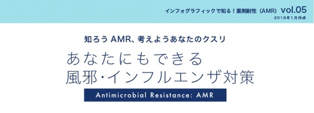 その第5弾として、“あなたにもできる風邪・インフルエンザ対策”を、2018年1月29日(月)より薬剤耐性AMR情報サイトhttp://amr.ncgm.go.jp/で公開いたします。
