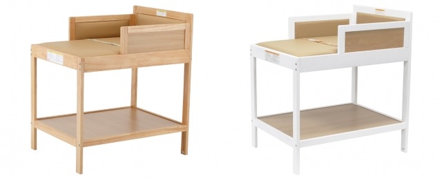 2018年より「おむつ替え台」の販売を開始いたします。カラーはナチュラルとホワイトの2色展開。対象年齢は、新生児~つかまり立ちができるまで。(耐荷重量は24ヶ月=約12kg) 転落防止の安全ベルト付き。赤ちゃんを寝かせる部分には、汚れてもさっと拭き取ることが出来る素材を使用。また、おむつ替えをしている間にママパパの荷物を置くことが出来る棚も装備。シンプルなデザインで置く場所を選ばず、使い易いおむつ替え台です。