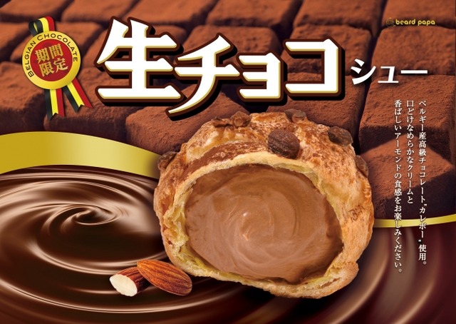 株式会社麦の穂(本社:大阪、代表取締役:今泉智幸)は、シュークリーム専門店ビアードパパにて『生チョコシュー』を発売いたします。また、今年はチョコ尽くしのラインナップを展開した“ショコラフェア”を2月1日から2月28日まで開催いたします。