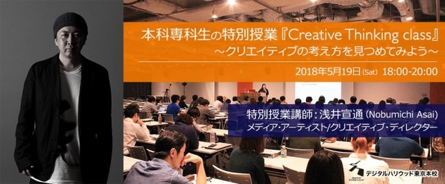この度、メディア・アーティスト/クリエイティブ・ディレクターの浅井宣通氏を講師にお招きし、クリエイティブ業界を目指し今春入学をする本科生、専科生全ての受講生を対象に、特別授業『Creative Thinking class』~クリエイティブの考え方を見つめてみよう~を開催いたします。