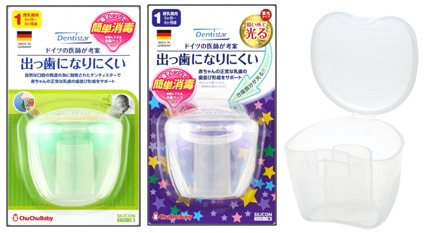 出っ歯になりにくいおしゃぶりデンティスターシリーズに、電子レンジ消毒も出来る保管ケースつきが追加。