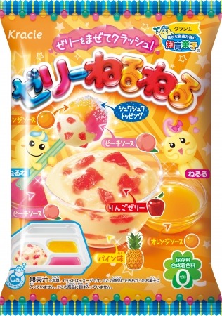 「ゼリーねるねる パイン味」は、おいしさにこだわった、「ねるねるねるね」のスペシャルバージョンです。今回初めてゼリー+ねるねるという新しい組み合わせにしました。りんごゼリーとパイン味のねるねるを、混ぜてクラッシュするのが楽しい商品です。ピーチソース、オレンジソース、シュワシュワトッピングがついているので、様々な味の違いを楽しめます。
