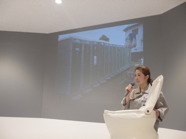 多くの被災者が直面したトイレ問題。被災地のトイレ事情を知り、どのような備えが必要なのかを親子で考えるプログラムです。携帯トイレの取り付け方も体験します。