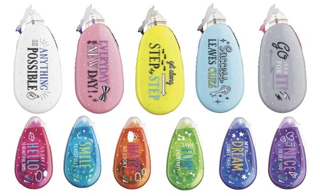 今回の限定版は、女子中高生に人気の「タイポグラフィ」を使ったオリジナルの手書き風デザインの2タイプ(全11柄)です。約1分間はきれいに貼り直しができる「ドットライナーコンパクト(プリント用)」には大人っぽいデザイン、ペンケースにもすっぽり入るミニサイズの「ドットライナープチプラス」には元気でカラフルなデザインをあしらい、好みの用途やデザインに合わせてお選びいただけます。