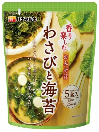 味噌・醸造製品メーカーのハナマルキ株式会社(本社:長野県伊那市、代表取締役社長:花岡俊夫)は、初めての味となる「わさび」を使用し、香りにこだわった即席みそ汁「わさびと海苔5食」を含む、3種類の新商品を2018年3月1日より発売します。