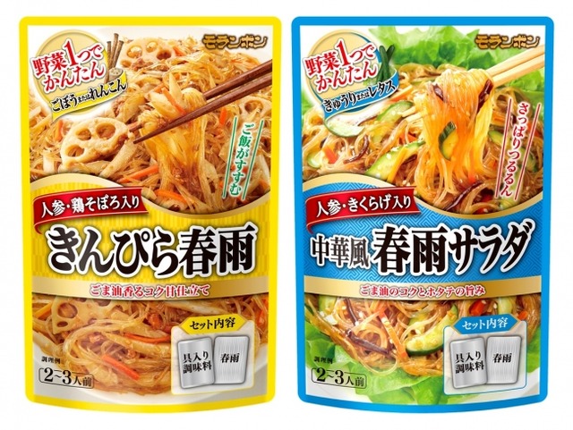 そこで、ワーキングマザーの献立作りを応援する「野菜1つでかんたん」シリーズから、根菜を用意するだけで作れる「野菜1つでかんたん きんぴら春雨」を新発売、簡便性をアップさせ、満足度向上を図るため「同 中華風春雨サラダ」をリニューアルいたします。