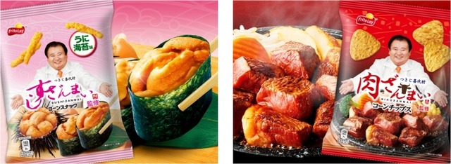 本商品は、株式会社喜代村が全国に50店舗以上展開する寿司チェーン店『すしざんまい』監修によるスナック菓子です。毎年1月5日に築地市場で行われていた初競りでお馴染の『すしざんまい』とのコラボ商品は、「うにの軍艦巻き」の味をサクッとした食感のコーンスナックで再現しました。さらに、同社が運営するステーキ店『肉ざんまい』とのコラボ商品は、ジューシーなステーキの味をパリッとした食感のコーンチップスで再現しました。