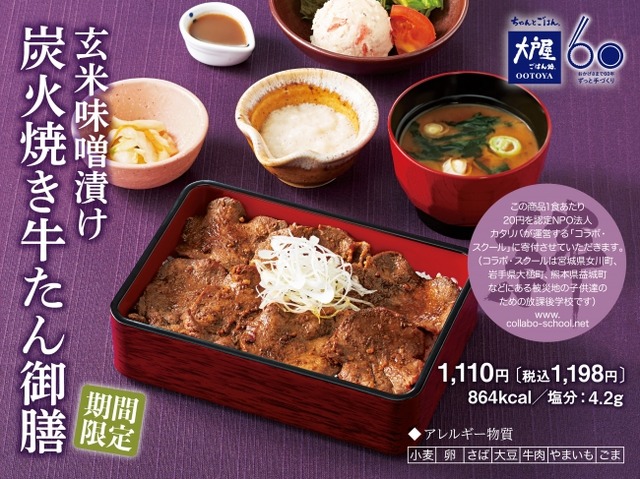 『玄米味噌漬け 炭火焼き牛たん御膳』 1,110円(税込1,198円)