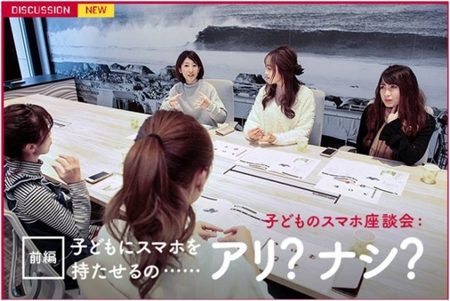 前編のテーマは、「子どもにスマホを持たせるの・・・アリ?ナシ?」。ズバリ、親として子どもにスマホを持たせることについて賛成か、反対か本音で語っていただきました。幼稚園・保育園から小・中学生のお子さんをお持ちのみなさんにお集まりいただいているため、お子さんの年齢や家庭の事情など様々な状況の方の意見を聞くことができ、これからスマホをも持たせることを検討している方にとっても、すでに持たせている方にとっても興味深い内容となりました。