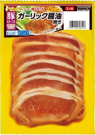 「豚ロースガーリック醤油焼き」は、豚肉と相性の良いニンニクをガツンと利かせた、ご飯によく合う味付けです。レタスやキャベツなどと一緒にお召し上がりください。