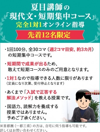 現代文のカリスマ「夏目(ナツメ)先生の現代文・短期集中コース」先着12名限定