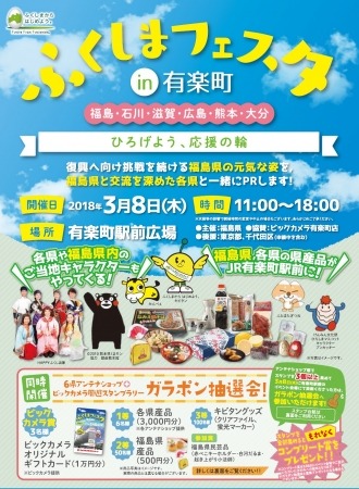 復興へ向け挑戦を続ける福島県の元気な姿を、福島県と交流を深めた、石川県、滋賀県、熊本県、大分県、広島県とビックカメラが参加する「ふくしまフェスタin有楽町」の連動企画として、首都圏で「6県アンテナショップ+ビックカメラ周遊スタンプラリー」を2月17日(土)~3月8日(木)の期間中開催します。