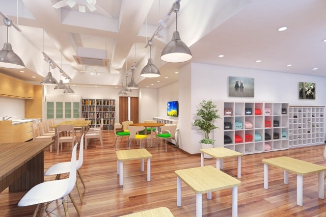 なお、総店舗面積約90坪のうち、3分の1にあたる約30坪のスペースは、株式会社やる気スイッチグループホールディングス(代表取締役社長:高橋直司)による幼児教室「チャイルド・アイズ」、英会話スクール「WinBe」を開設します。チャイルド・アイズには100種類以上の教材を使用して思考力を養う知能育成コースと、志望校別のカリキュラムで保護者へのアドバイスも行う受験対策コースが用意されています。WinBeでは英語を母国語とするネイティブ講師とバイリンガル講師による2人講師体制で、英語4技能(聞く、話す、読む、書く)を身につけます。