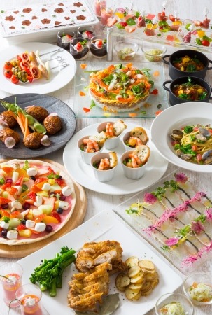 ケーキのような「ちらし寿司」や「あさりと菜の花のパスタ」、フルーツを使った窯焼ピザなど、春らしい彩り豊かなビュッフェ料理の数々に、会話も笑顔も広がります。大人数でのお祝いにもおすすめ。