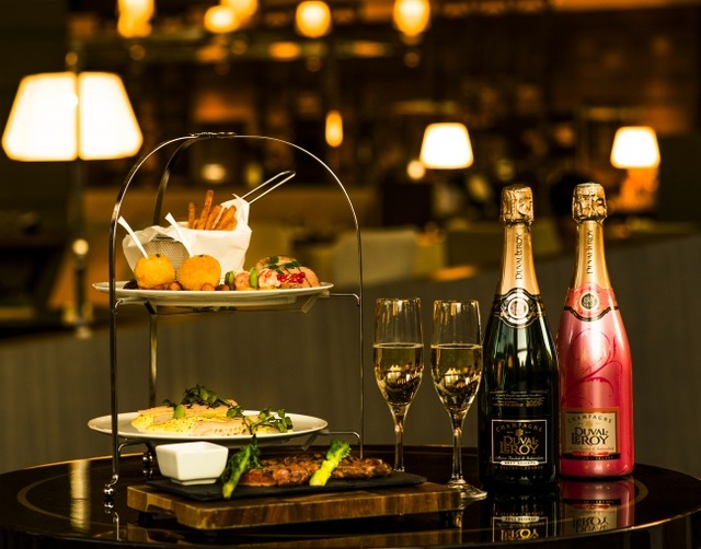 吹き抜けの開放感あふれる空間で、夕暮れどきからシャンパンのフリーフローが楽しめる贅沢なイブニングハイティー。爽やかな春の夜に合わせ、シャンパンは、イチジクやレモン果実とクリーミーな泡が調和する洗練された味わいの「デュヴァル=ルロワ ブリュット・レゼルヴ NV」、熟した果実の甘さとシャープな酸味のハーモニーがデザートにも合う甘口の「レディ・ロゼ・セックNV」をセレクトしました。
