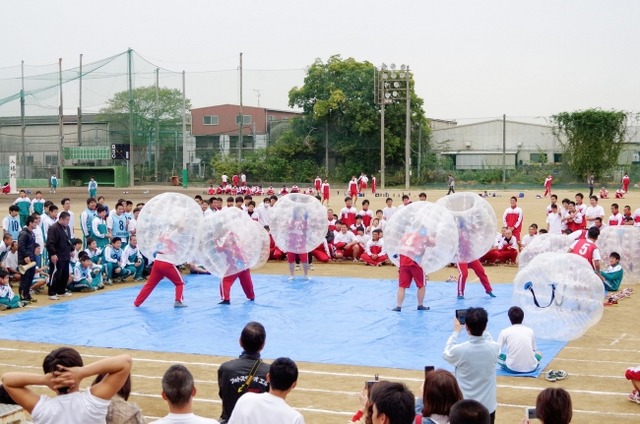 企業の大運動会や学校サークル活動の交流イベントなどで使用されるようになってから、最近では学校教育期間の運動会の新種目としてバブルサッカーを行ったり、ジュニアサッカーチームでの新しい練習器具として導入される機会が増えてきました。