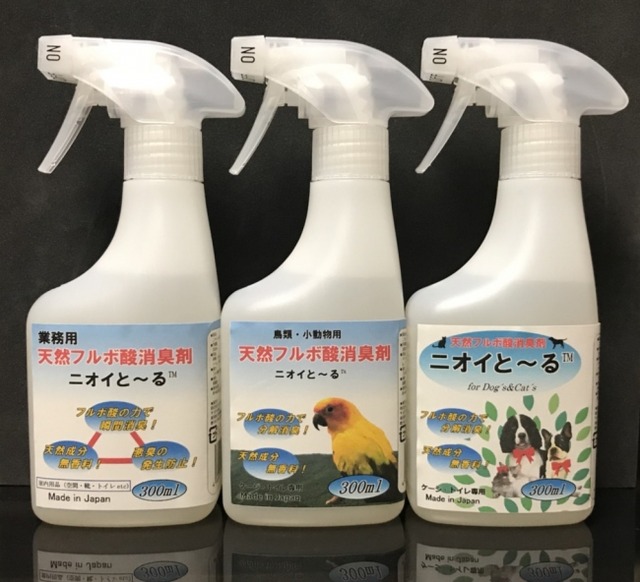 現在、各300㎖スプレー「業務用」「犬猫用」「鳥類・小動物用」の3種類を販売中です。