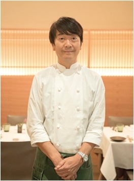 様々なお仕事をこなしながら京都と東京の往復で日々忙しい笹島保弘シェフ。そんななか、今回も快くキッチンステージの為にメニューをご考案下さいました。大きな朴葉にのった“焦げちゃった”シリーズの前半は蟹クリームコロッケ、後半は白子。朴葉の横のもうひとつの前菜は寒ブリを使って。きれいな花々で彩られた蕪蒸し仕立ての前半も、カルパッチョの寒ブリに冬野菜をたっぷり添えて大根のかき氷をかけた後半もどちらも魅力的です。もちろんメインも華のある笹島ワールド満載!海老と九条ネギのパスタか豆乳フリカッセのグリーンリゾットか……私たちの五感を刺激して愉しませてくれる心躍る料理をご用意して皆さまをお待ちしています。