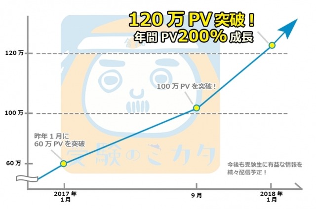 株式会社パンタグラフ(所在地:東京都渋谷区、代表取締役:丹羽宏允)が企画運営する、受験生を応援するメディア「受験のミカタ」が2018年1月に月間120万PVを突破いたしました。