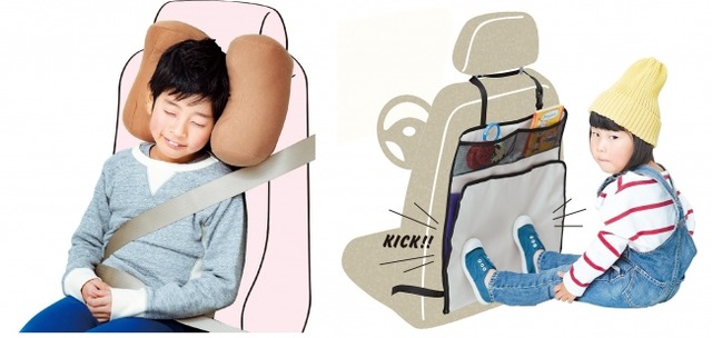 ベビーシートを参考にした左右どちらにも頭がもたれられる形状が揺れる首を支えます。遊び疲れた帰り道も、とり付ける高さを調整できるので、子どもから大人まで、快適で寝心地でぐっすり。お休みの遠出や帰省のロングドライブに備えれば、楽しい思い出もワンランクアップ。カラーは、〈ベージュ〉〈ネイビー〉〈グレー〉の3色、運転席を除く家族の人数分用意してドライブへGO!
