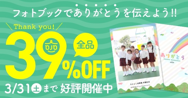 フォトブック作成サービス”sarah [サラ] ”は、日頃よりご愛顧いただいているお客様への感謝をこめて、3月1日10時より全商品を対象とした39%OFFキャンペーンを開始いたしました。
