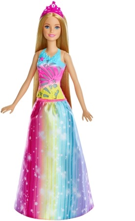 従来のバービーよりも長い髪で、三つ編みやお団子ヘアなど色々なヘアアレンジを楽しむこともでき、虹色の輝くドレスとともにプリンセス気分を味わえます。