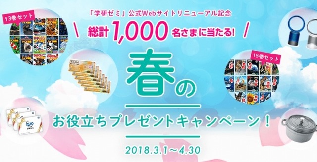 3月1日~4月30日まで、リニューアルを記念いたしまして、総計1,000名様に当たる「春のお役立ちプレゼントキャンペーン!」を実施中です。