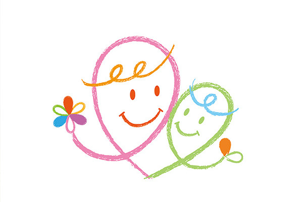 このロゴマークは、“大人がやさしく寄り添う中で子どもが、安心して育つイメージ”で描きました。